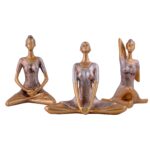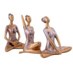 Suitable for home decor Yoga Posture Lady Statue Idol for Home Yoga Statue three pair admirable piece of gift (golden)